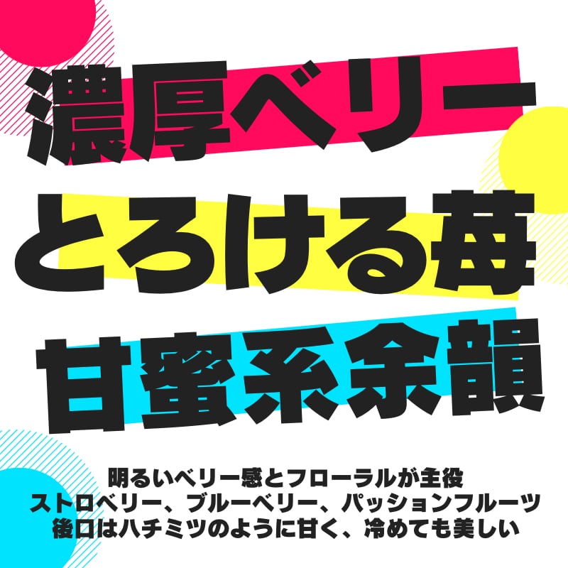 華やかで明るい果実味が好きな方には、ぜひ一度お試しいただきたいロットです。